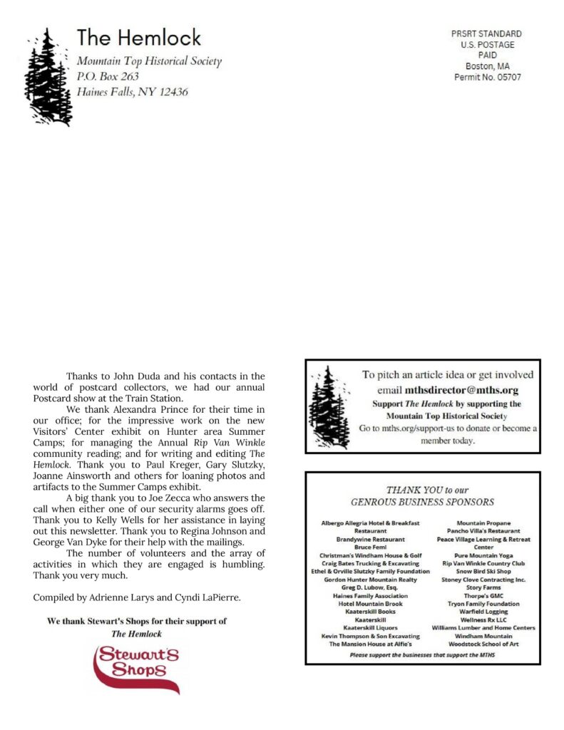 Members of the MTHS receive copies of The Hemlock in the mail as part of their member benefits.